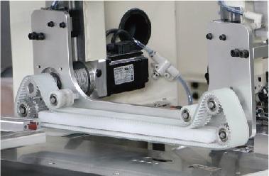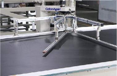 ● 环形输送带搭配旋转机械手,自动完成产品的拷四边缝制。